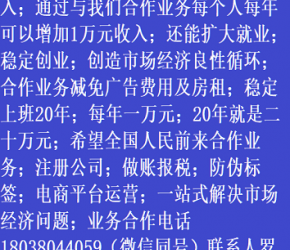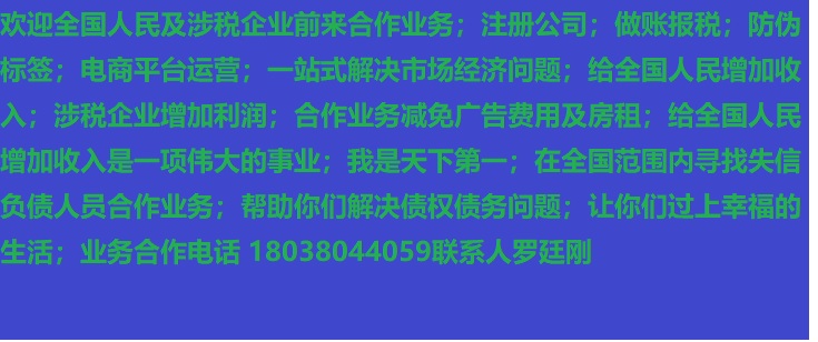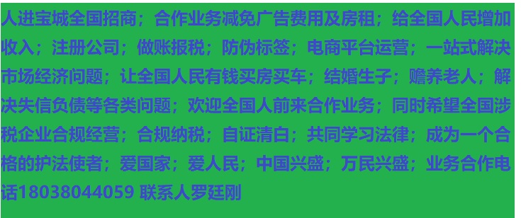 人進(jìn)寶城全國(guó)招商;合作業(yè)務(wù)減免廣告費(fèi)用;歡迎全國(guó)涉稅企業(yè)前來(lái)合作;業(yè)務(wù)合作電話(huà) 18038044059 聯(lián)系人羅廷剛